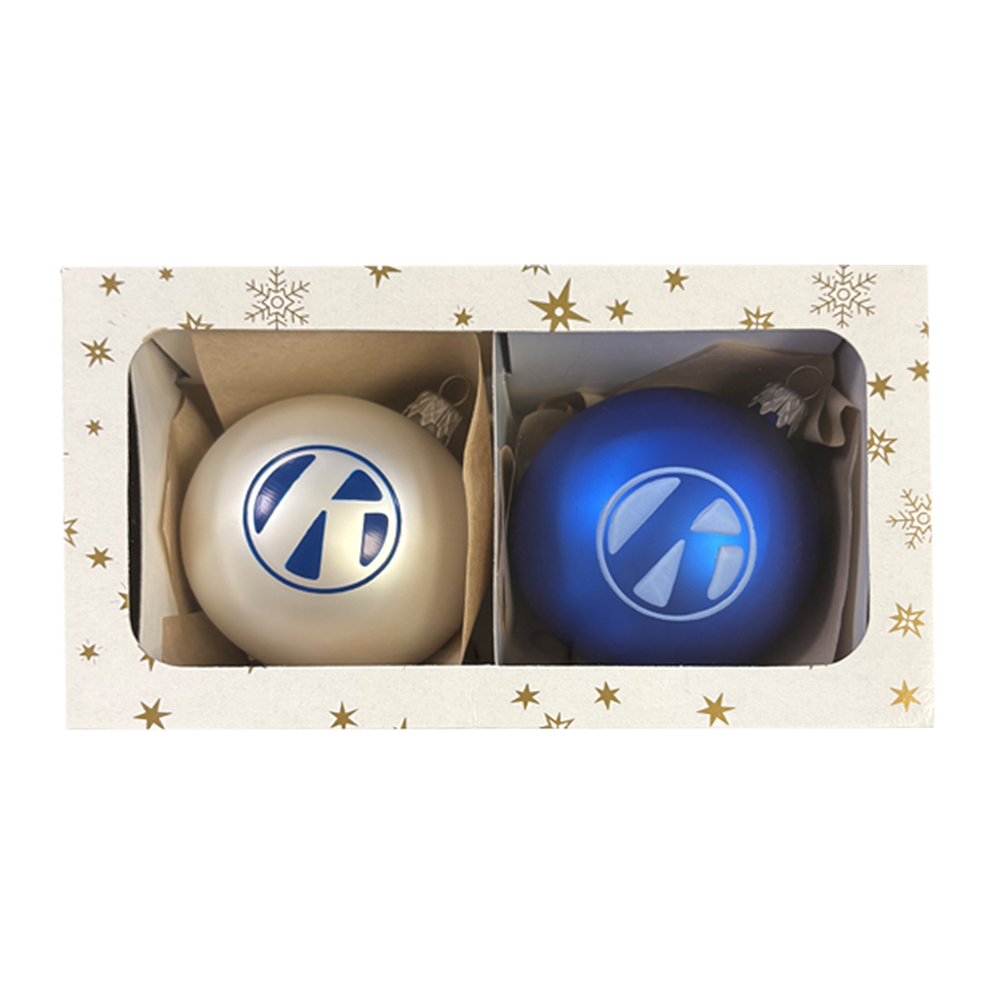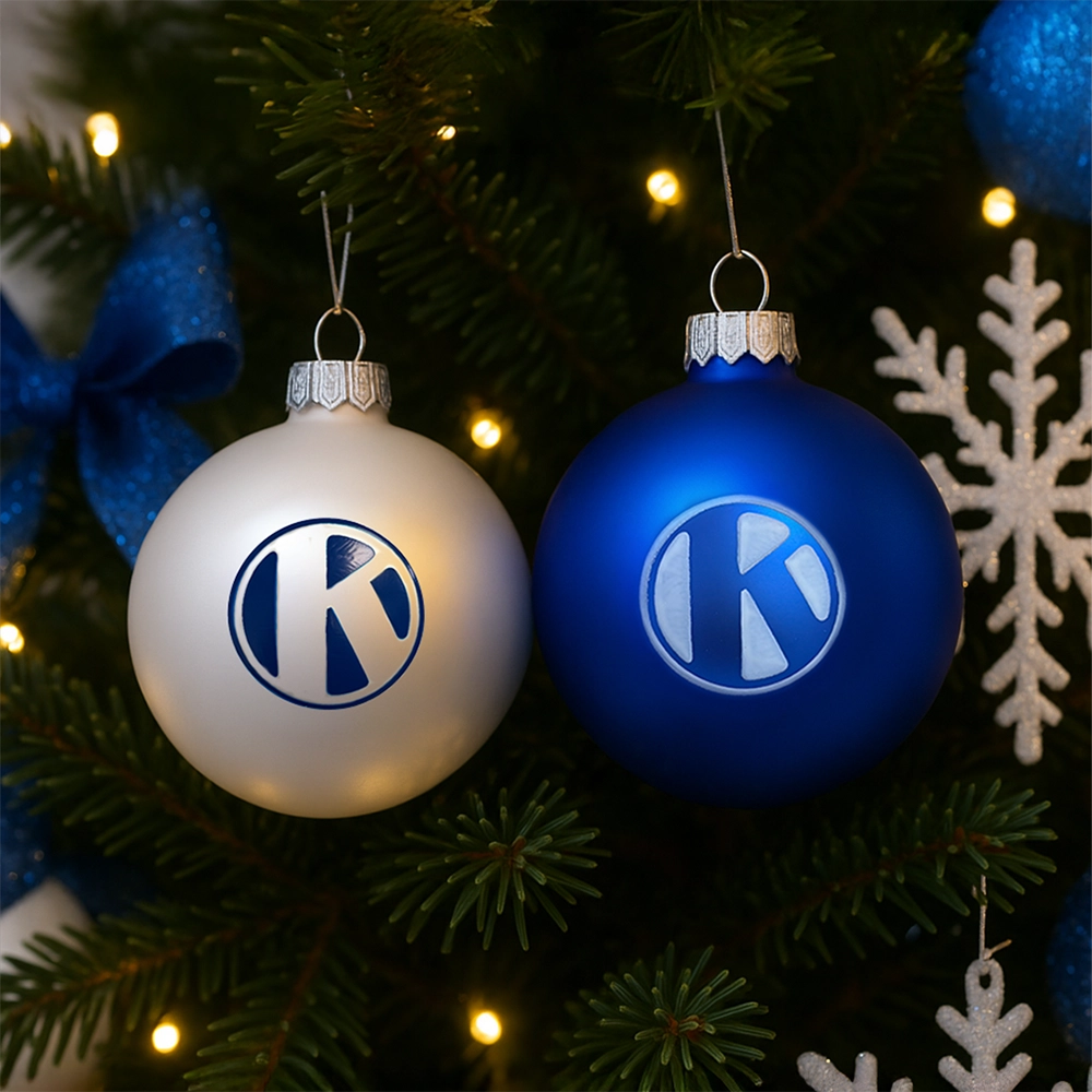 Im 2er-Set enthalten sind zwei stilvolle Kugeln: Eine in klassischem KIRNER-Blau und eine in elegantem Perlweiß mit dem ikonischen „KIRNER K“.